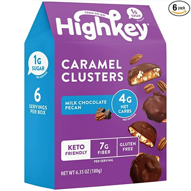 Highkey Low Carb Chocolate Bars 6 Pcs Keto Desserts Milk Pecan Caramel Nut Clusters Gluten Free Healthy Snacks Sugar Free Candy Treat Diabetic Sweet Turtle Treats Ketogenic Diet Friendly Foods Walmart Com